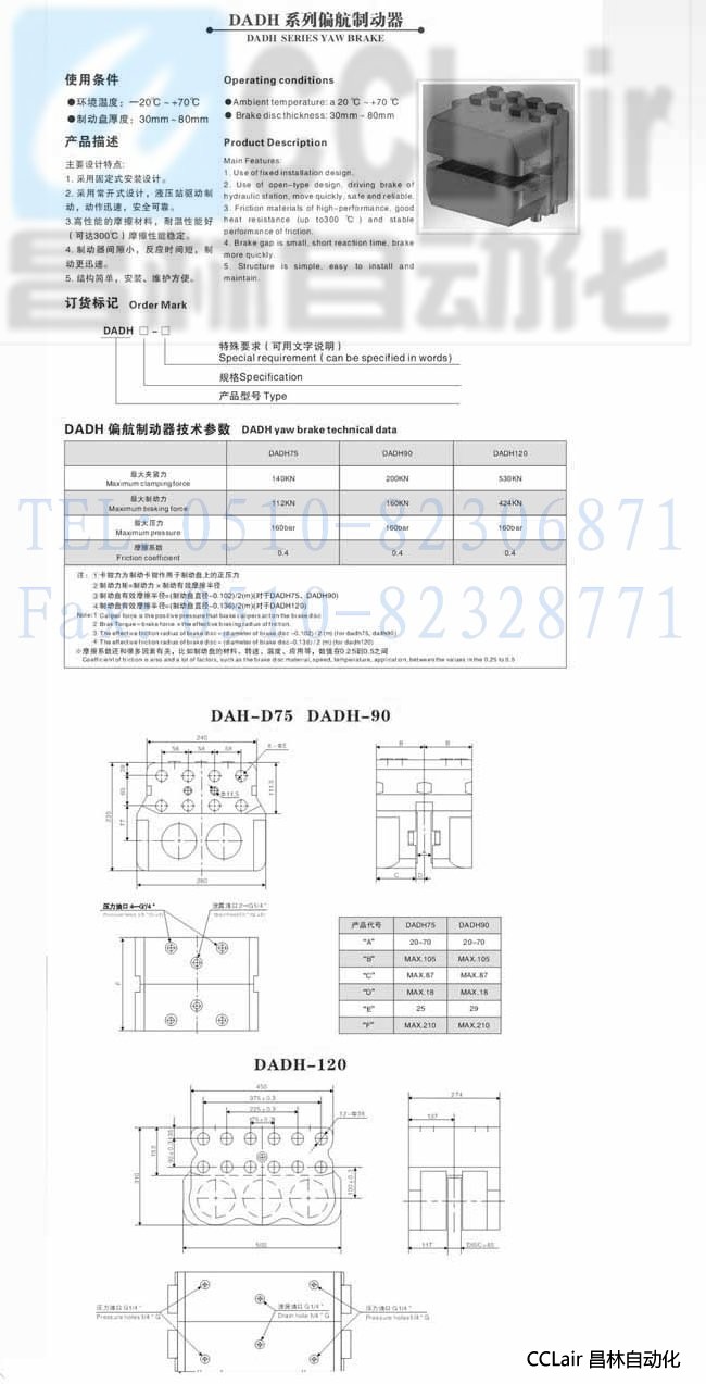 DADH-75,DADH-90,DADH-120,偏航制動器
