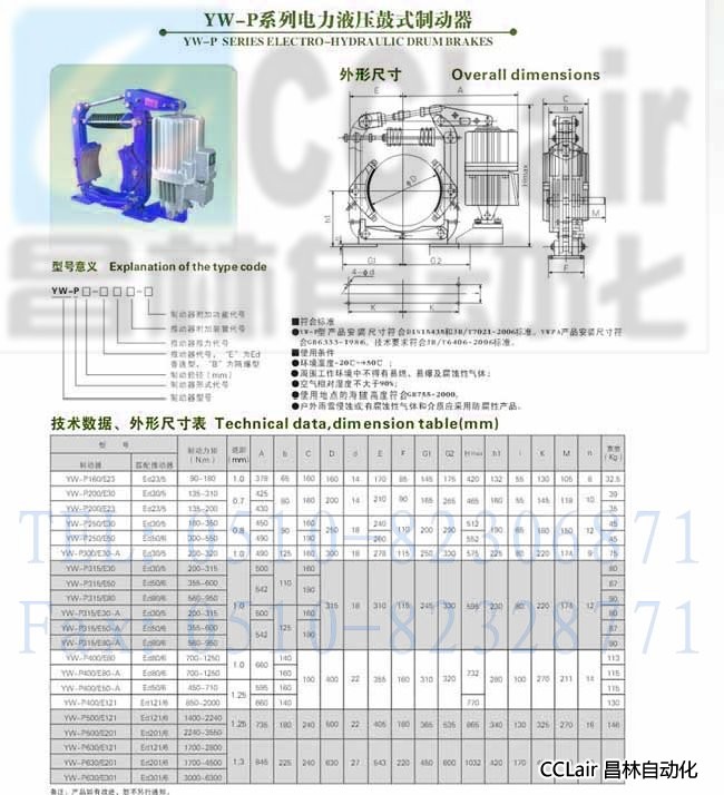 YW-P315/E30,YW-P315/E50,YW-P250/E80,電力液壓鼓式制動(dòng)器