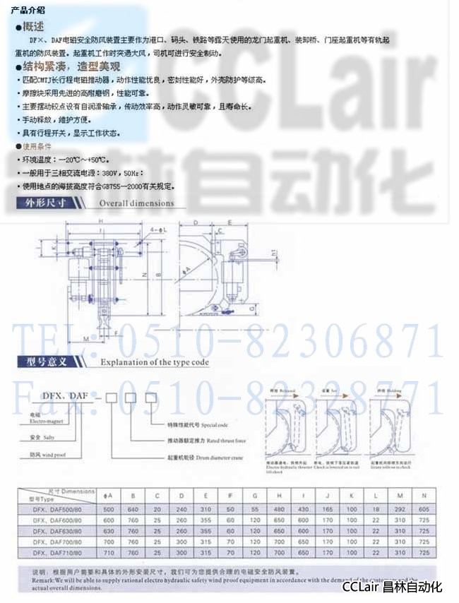 DFX700/80,DFX710/80,DAF700/80,DAF710/80,電磁液壓安全防風(fēng)鐵楔制動器