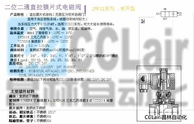2W1212,2W1215,2W1220,2W1225,2W1232,2W1240,2W1250,二位二通直拉膜片式電磁閥