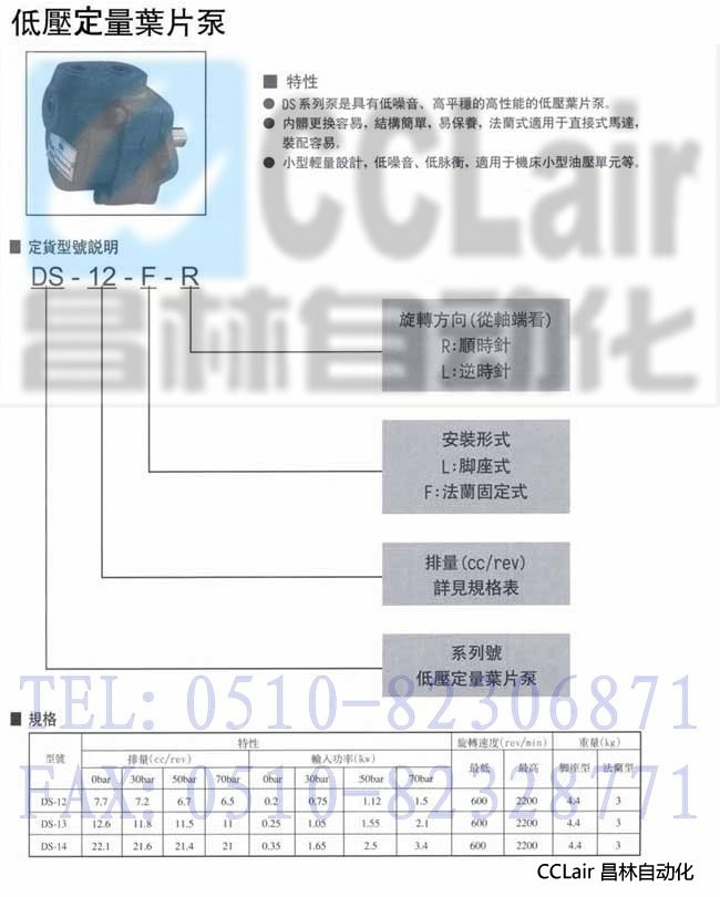 DS-12,DS-13,DS-14, 低壓定量葉片泵