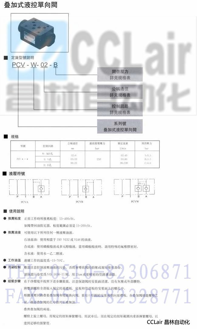 PCVB-02,PCVB-03,PCVB-06,疊加式液控單向閥