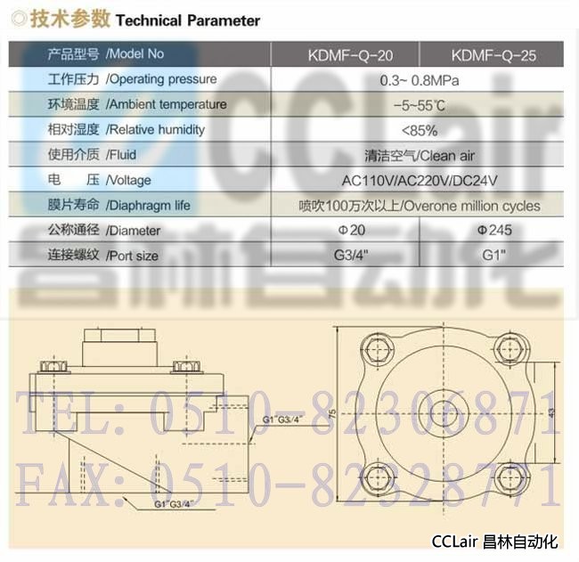 KDMF-Q-20, KDMF-Q-25 ,直角式電磁脈沖閥,