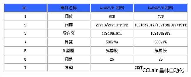 A46F先導(dǎo)式安全閥主要零部件材料: