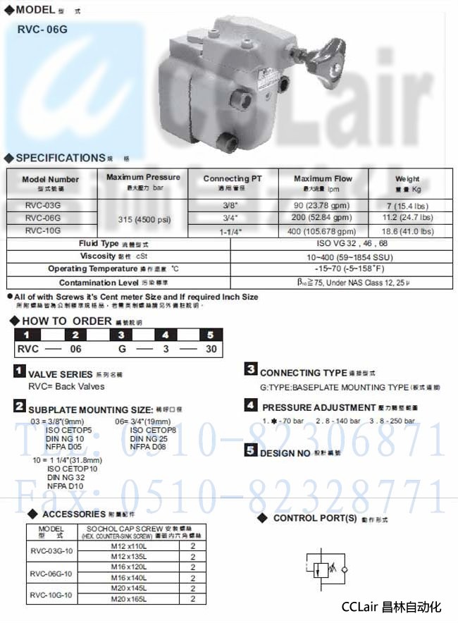 RVC-03G,RVC-06G,RVC-10G,背壓閥