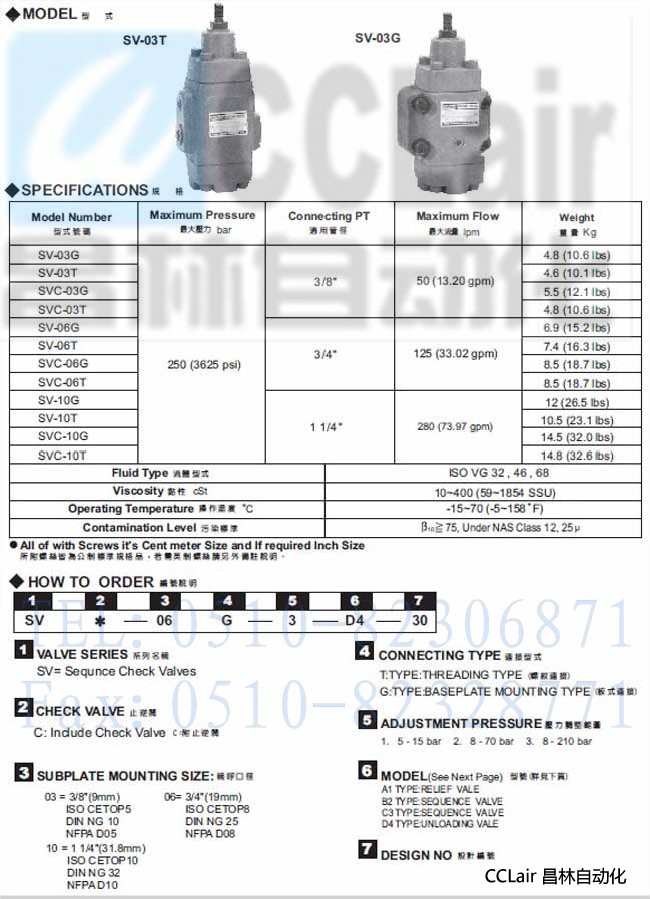 SVC-03G,SVC-03T,SV-10G,SV-10T,SVC-10G,SVC-10T,單向順序閥,