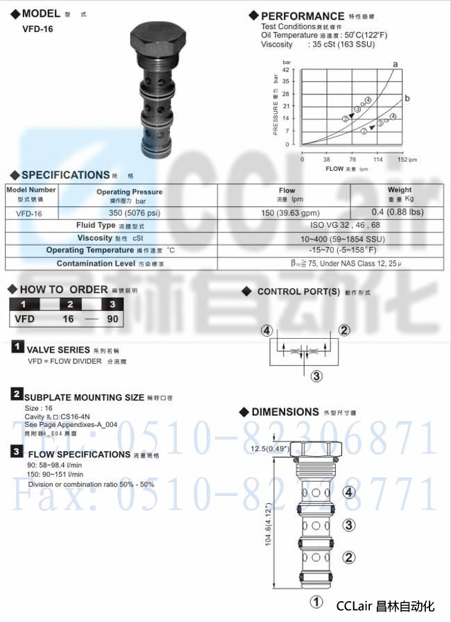 VFD-16,插入式分流閥,