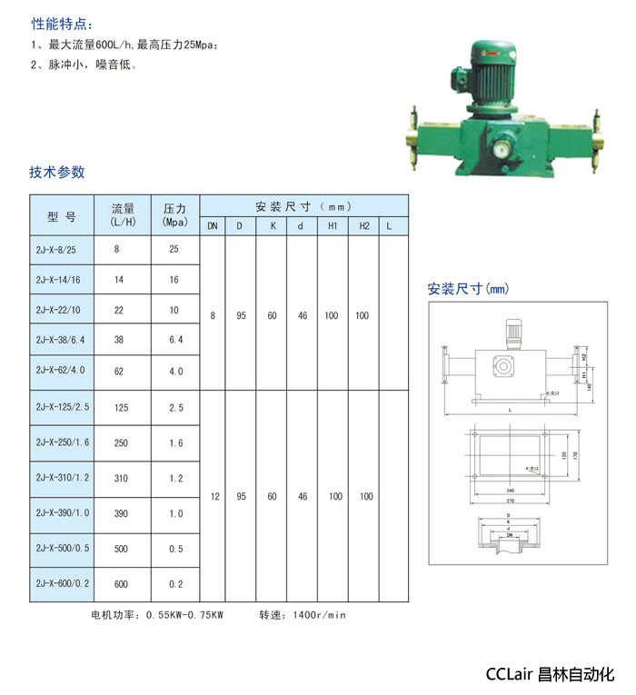2J-X-8/25,2J-X-14/16,2J-X-22/10,2J-X-38/6.4,柱塞計量泵