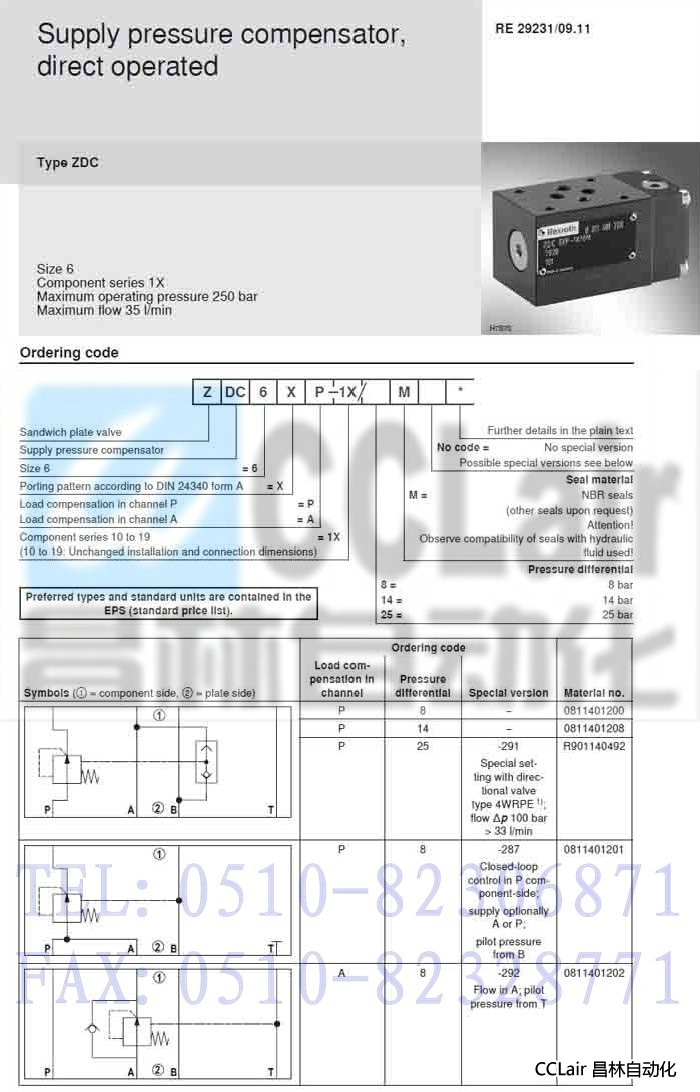 ZDC6XP-1X/8M,ZDC6XP-1X/14M,ZDC6XP-1X/25M,壓力補償器,力士樂REXROTH,德國力士樂