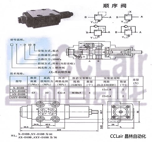 X-D10B,XY-D10B,AX-D10B,AXY-D10B,順序閥
