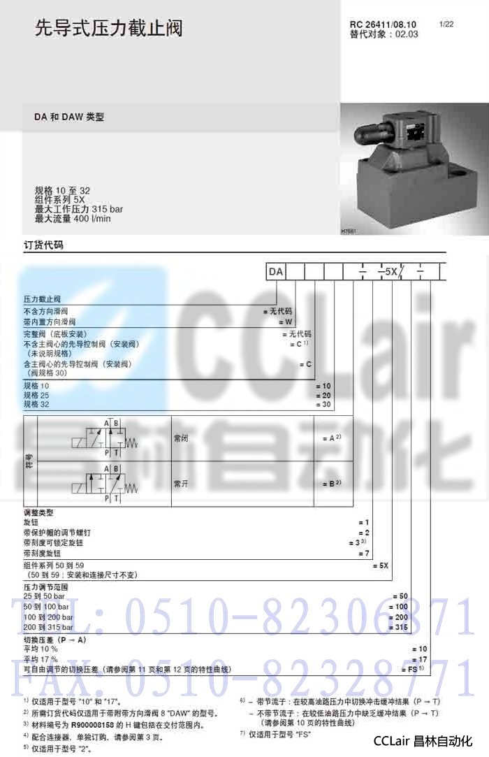 DAC1-5X/200-10,DAC1-5X/200-10Y,DAC1-5X/200-17 先導(dǎo)式壓力截止閥,力士樂REXROTH,德國力士樂