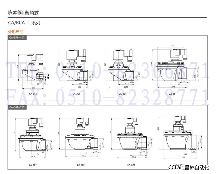 CA/RCA15T,CA/RCA20T,CA/RCA25T,CA/RCA35T,直角式脈沖閥