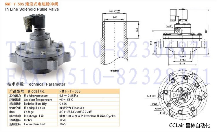 RMF-Y-50S,淹沒式電磁脈沖閥