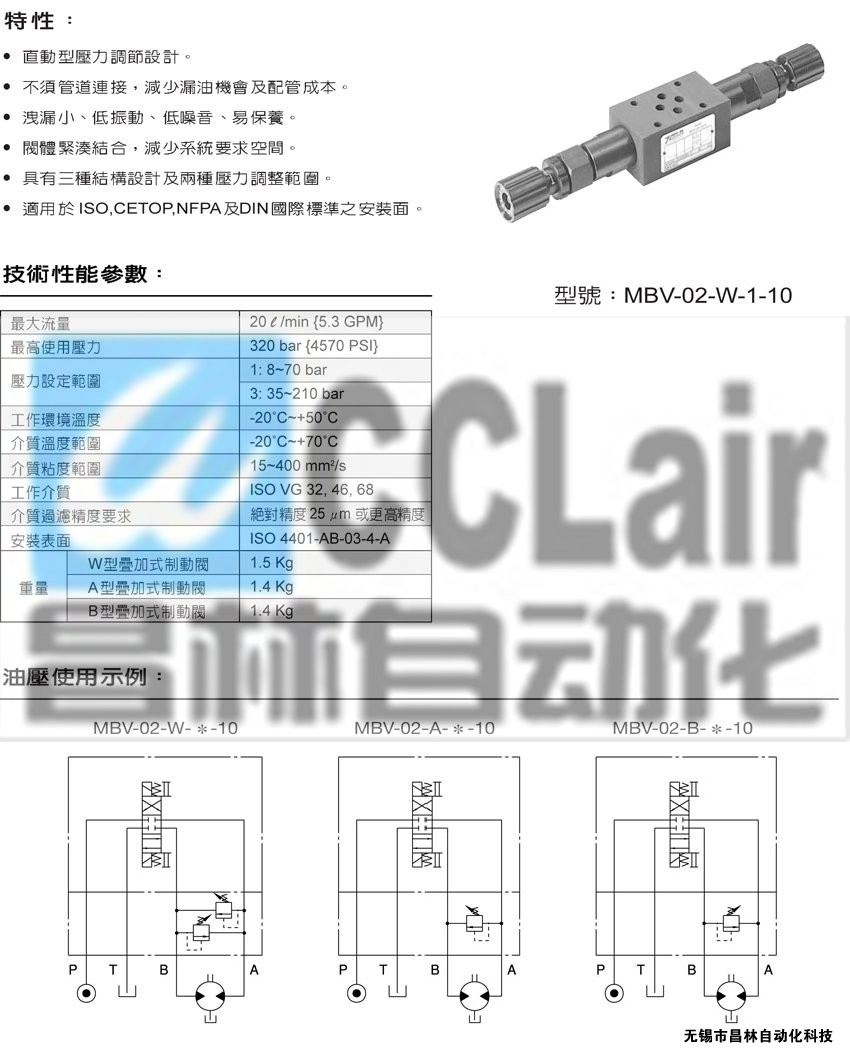 MBV-02-W,MBV-02-A,MBV-02-B,疊加式制動閥