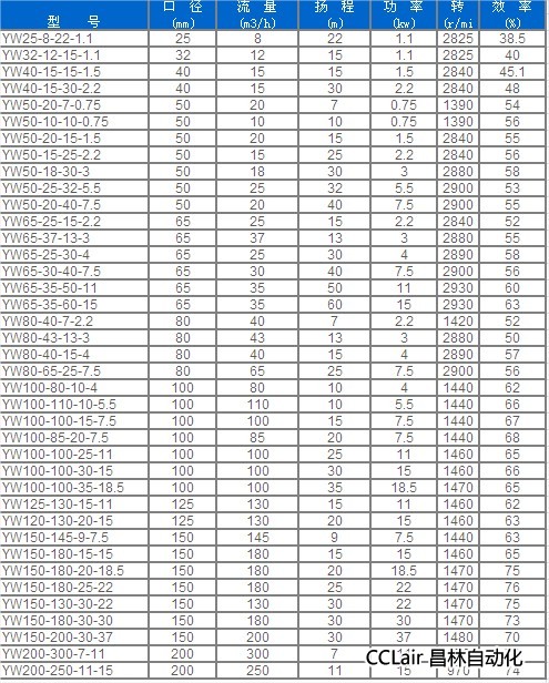 YW25-8-22-1.1,YW32-12-15-1.1,YW40-15-15-1.5,YW40-15-30-2.2,液下式排污泵
