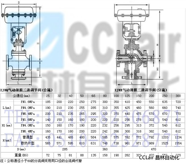 本系列產品有三通合流及三通分流兩種。公稱壓力有PN16、40、64;公稱通徑范圍DN25—300。適用流體溫度由-60℃至+450℃。泄漏量標準為Ⅳ級。流量特性有直線、拋物線兩種。