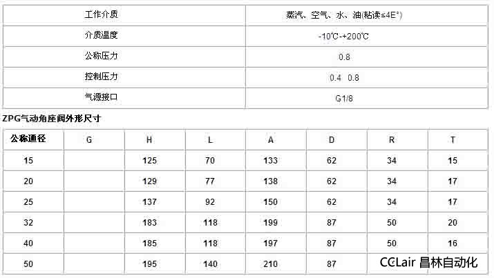 ZPG氣動(dòng)角座閥技術(shù)參數(shù)