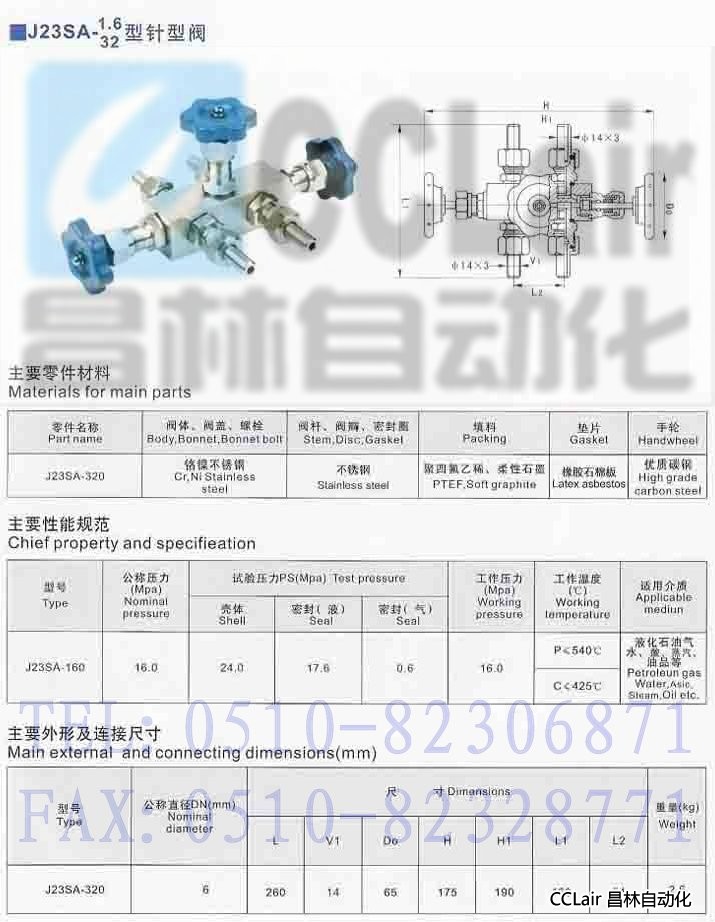 J23SA-160,J23SA-320,外螺紋針型閥組合閥