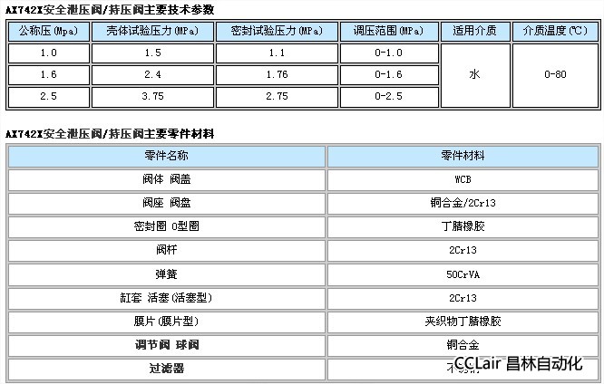 AX742X安全泄壓閥/持壓閥部件列表: