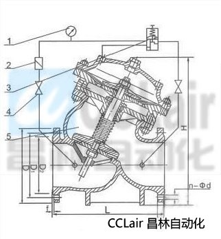 1、壓力表2、過濾器3、控制導(dǎo)閥4、流量調(diào)節(jié)閥5、主閥