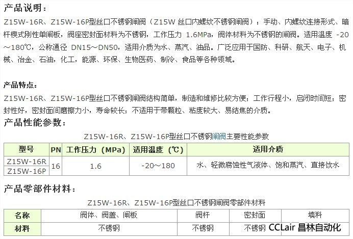 Z15W-16P,Z15W-16R,絲口不銹鋼閘閥