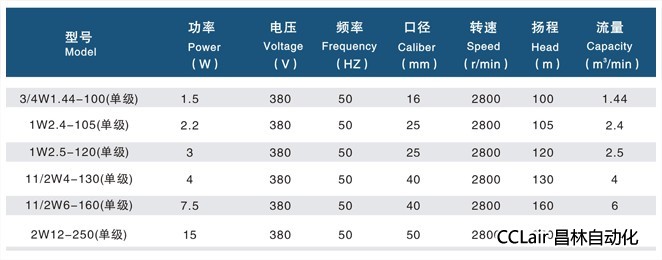 3/4W1.44-100(單級),1W2.4-105(單級),1W2.5-120(單級),