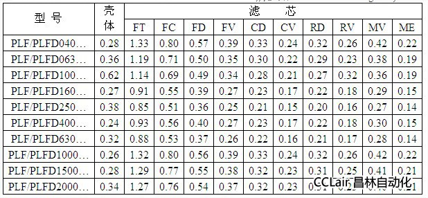 4、額定流量下的清潔濾芯壓降(單位:1×10
