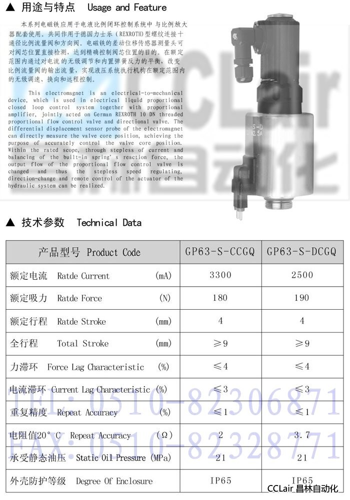 GP63-S-CCGQ,GP63-S-DCGQ,帶位移傳感器比例閥用電磁鐵