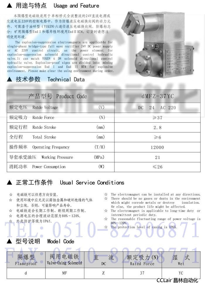 dMFZ-37YC,隔爆型直流濕式閥用電磁鐵