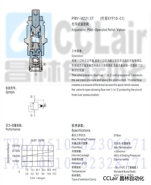 PRV-M221.5T,先導(dǎo)式溢流閥