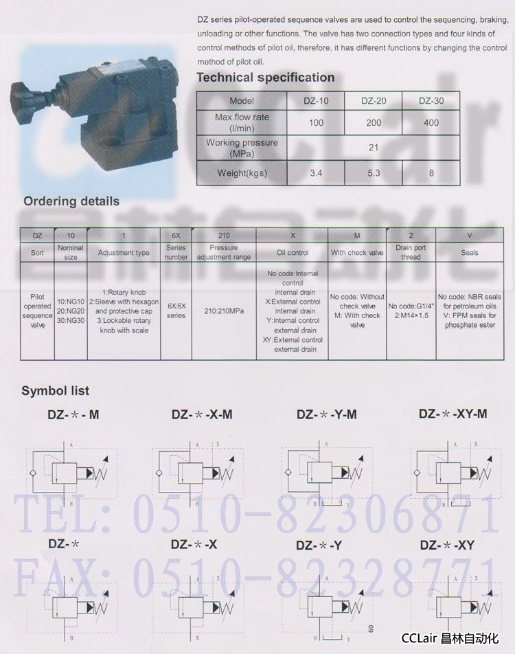 DZ-10,DZ-20,DZ-30,先導(dǎo)式順序閥