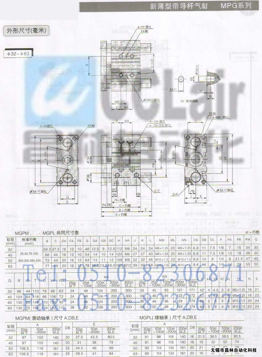 MGPL63TF-25,MGPL63TF-50,MGPL63TF-75,MGPL63TF-100,新薄型帶導桿氣缸,生產(chǎn)廠家,價格,