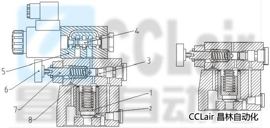 CR/CRW系列壓力控制閥先導(dǎo)式溢流閥,它們用于限制(CR)或用電磁鐵(CRW)限制及卸荷系統(tǒng)壓力。該系列閥的主要組成由帶主閥芯插件②主閥①和壓力調(diào)節(jié)單元的先導(dǎo)閥⑦組成,其中CRW型電磁溢流閥附帶一只電磁換向閥⑤,用于切換壓力或卸荷壓力。正常CRW型電磁溢流閥的功能是限制和卸荷系統(tǒng)壓力,也可以根據(jù)用戶需要做成通過電磁換向閥的換向切換多級壓力(最高3級壓力)。具體可以咨詢本公司技術(shù)部門。