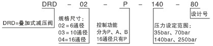DRD是滑閥式疊加結(jié)構(gòu)減壓閥。DRD02是直動式三通閥,DRD03是先導(dǎo)式三通閥,DRD04是先導(dǎo)式兩通閥。