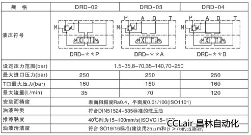 DRD系列疊加減壓閥的控制形式見功能符號說明。