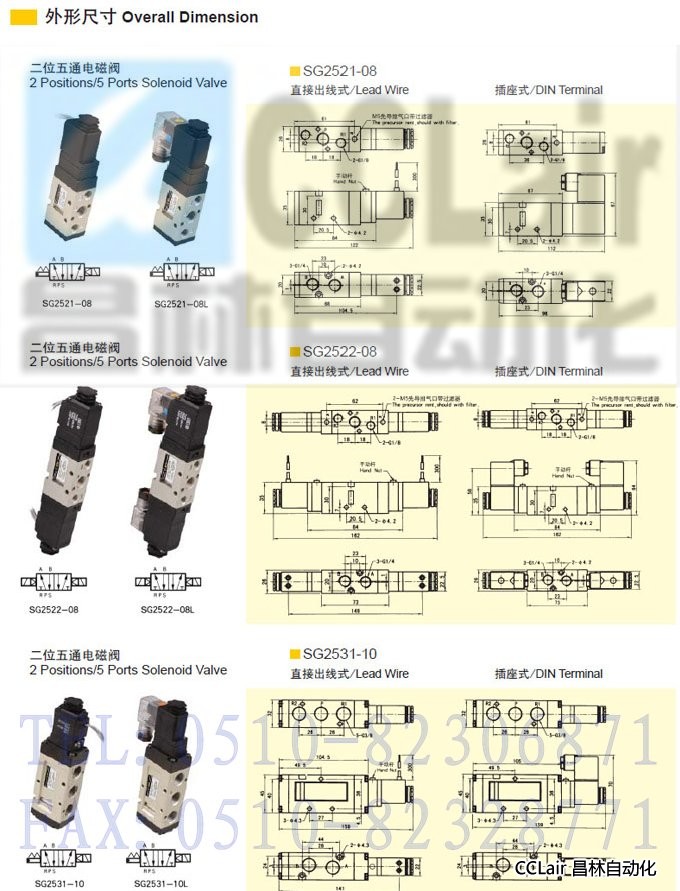 SG2521-08,SG2521-08L,SG2522-08,SG2522-08L,SG2531-10,SG2531-10L,二位五通電磁閥