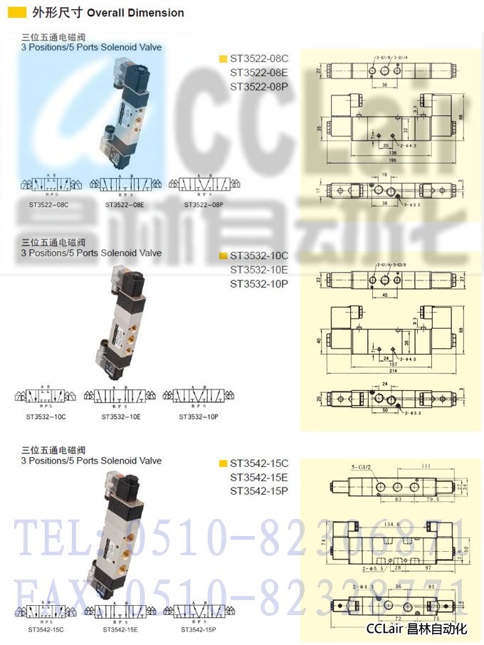 ST3522-06C,ST3522-08C,ST3522-10C,ST3532-10C,ST3532-15C,三位五通電磁閥
