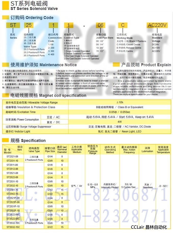 ST2511-06,ST2512-06,ST2521-08,ST2522-08,ST2531-10,ST2532-10,二位五通電磁閥