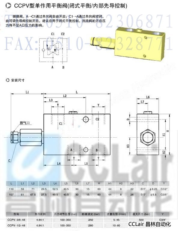 CCPV-3/8-48,CCPV-1/2-48,單作用平衡閥(閉式平衡/內(nèi)部先導控制)