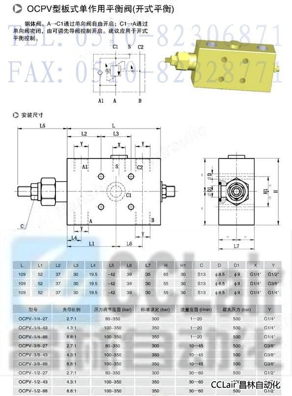 OCPV-3/8,OCPV-1/4-27,OCPV-1/4-43,OCPV-1/4-88,板式單作用平衡閥(開式平衡)