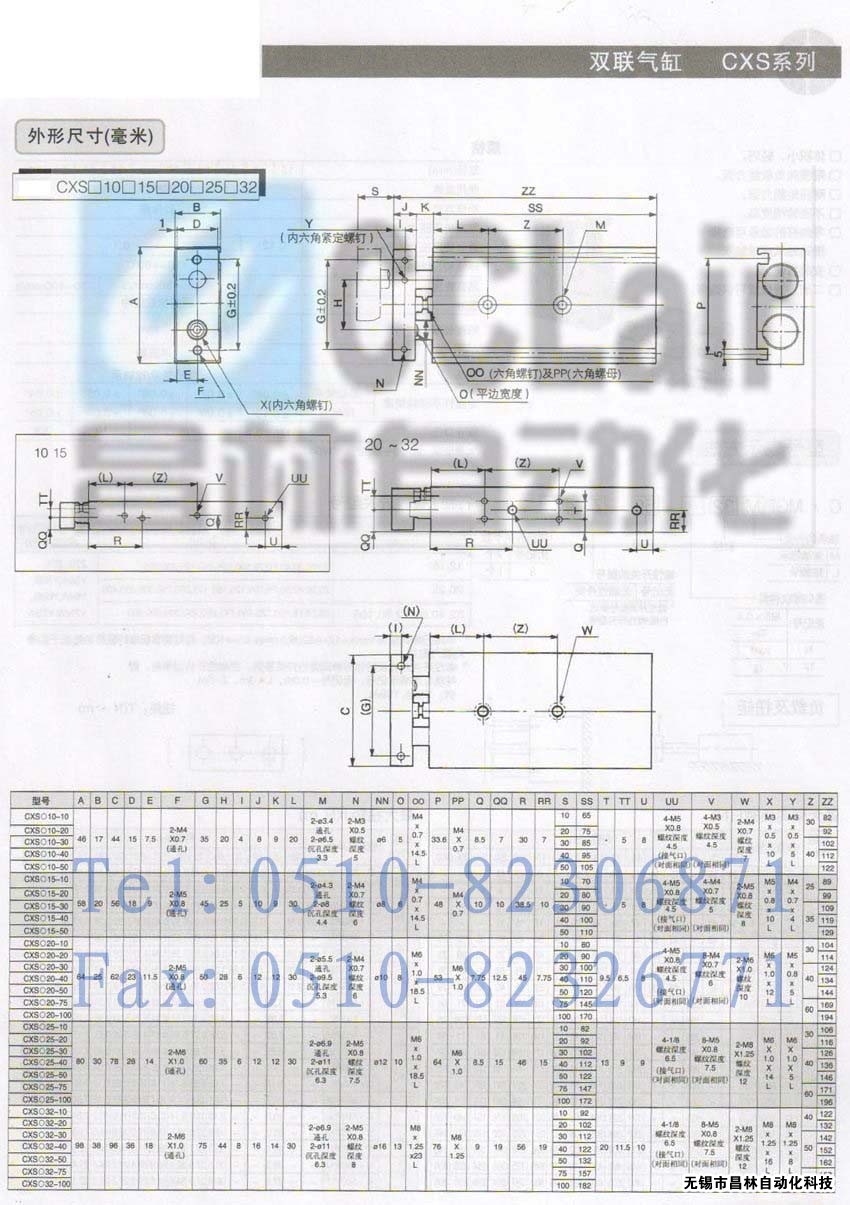 CXSL25-80-Z76,CXSL25-80-Y59A,CXSL25-80-Y59B,雙聯(lián)氣缸