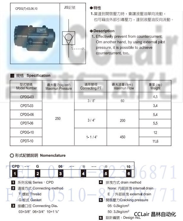 CPDG-03,CPDT-03,CPDG-06,CPDT-06,CPDG-10,CPDT-10,引導(dǎo)止逆閥