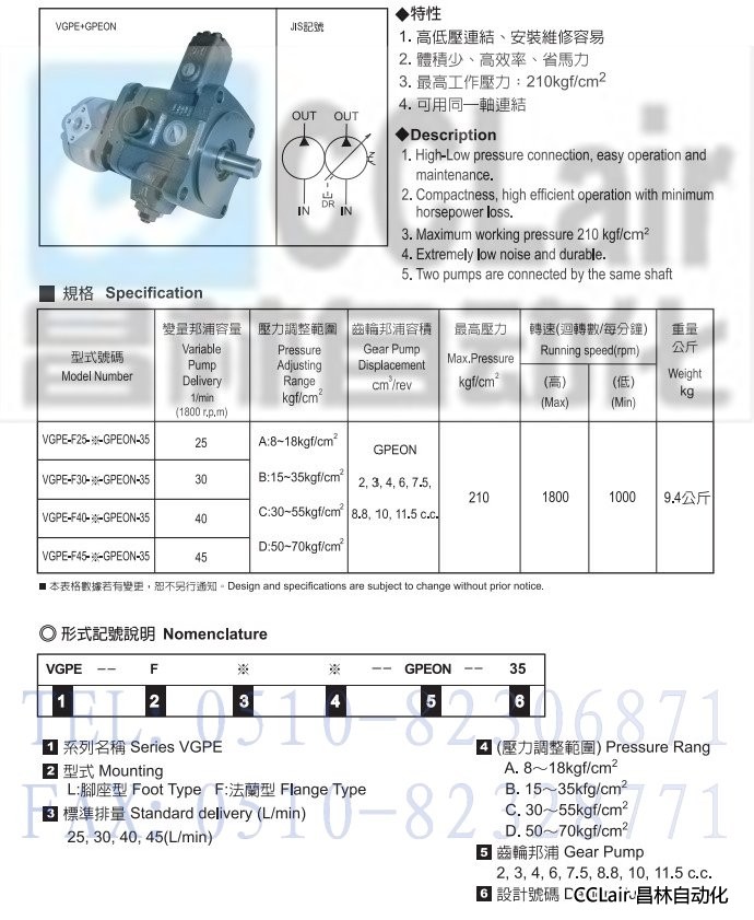 VGPE-F25-A-GPEON-35,VGPE-F25-B-GPEON-35,葉片泵+齒輪泵