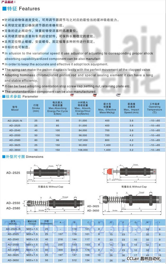AD-2525-N,AD-2525,AD-2540,AD-2550,AD-2580,AD-3625,AD-3650,油壓緩沖器 |