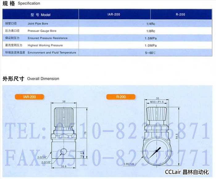 IAR-200,R-200,調(diào)壓閥