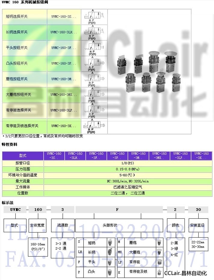 UVMC-160-3S,UVMC-160-3LH,UVMC-160-3F,UVMC-160-3P,機(jī)械按鈕閥