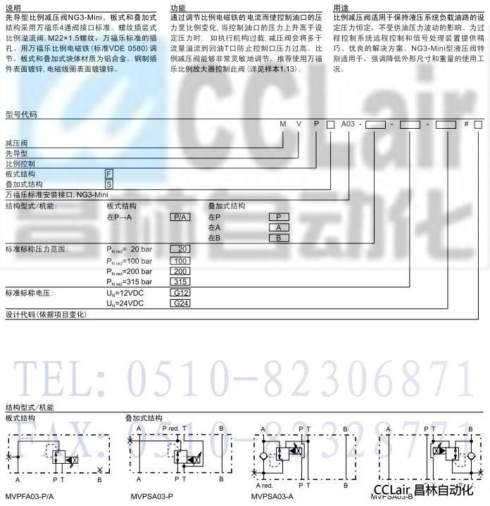 MVPF0A03-P/A,MVPSA03-P,MVPSA03-A,MVPSA03-B,板式和疊加式比例減壓閥