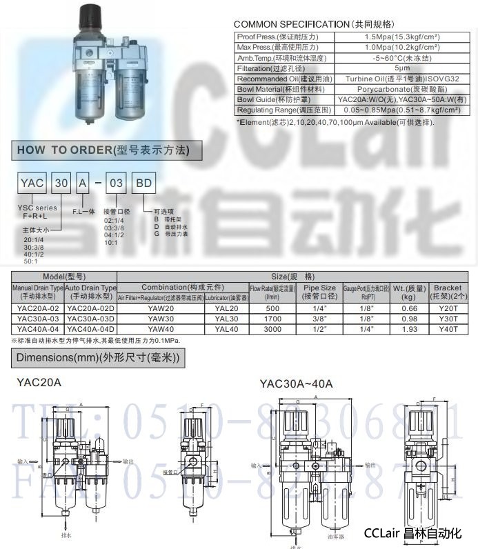 YAC20A-02,YAC30A-03,YAC40A-04,空氣過濾組合