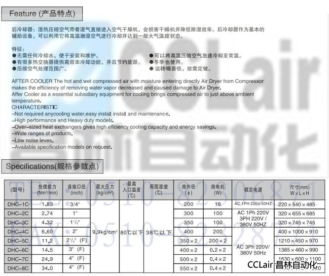 DHC-1C,DHC-2C,DHC-3C,DHC-4C,DHC-5C,DHC-6C,DHC-7C,DHC-8C,冷卻器