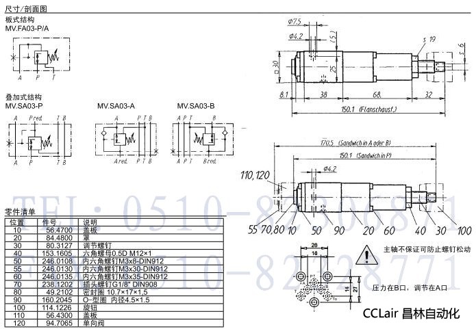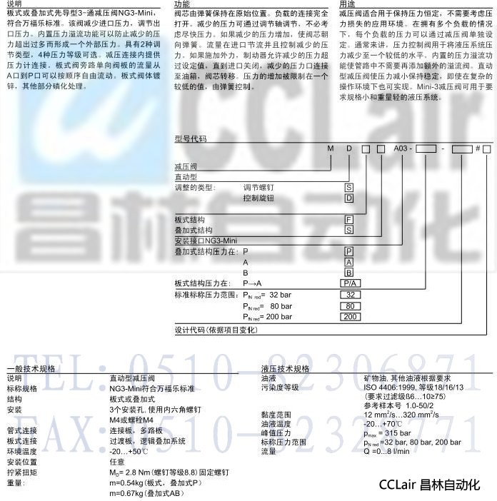 MD.FA03-P/A,MD.SA03-P,MD.SA03-A,MD.SA03-B,直動式減壓閥板式和疊加式結構